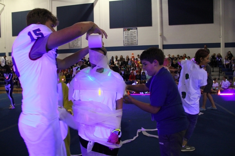 Students also teamed up with their teachers for a mummy-wrapping contest with spectators cheering for the winning team.