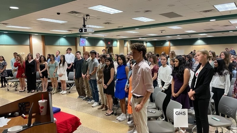 Families and staff packed GCISD’s Professional Development and Education Center (PDEC) the evening of November 9 for a good reason: to celebrate the first-ever districtwide induction for Hope Squad members. Hope Squad is a nationwide peer-to-peer suicide prevention program started by a principal in Utah who had experienced one too many student suicides and vowed “that he would do everything he could to prevent another child from taking their life.” In GCISD, the program is in every middle school, Colleyville Heritage High School and Grapevine High School.