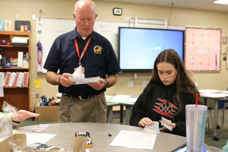 Down the hall, teacher Gale Rivers was having students participate in a lesson about managing their living expenses after they land a job. He started by giving them a stack of $1,580 in fake money and then having them pay for living expenses such as rent, transportation, medical insurance and other living expenses. Along the way, he stressed the importance of saving money.